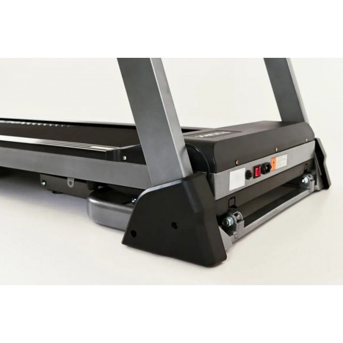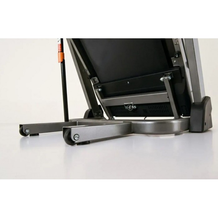 Ця модель поєднує компактність та стійкість. Завдяки складній конструкції доріжка легко поміщається навіть у невеликих квартирах, а транспортні колеса дозволяють без зусиль переміщати її. Система амортизації з 6 еластомерів знижує навантаження на хребет і суглоби, а міцна рама гарантує довговічність. Для подовження ресурсу доріжки важливо регулярно змащувати полотно, перевіряти кріплення та використовувати захисний килимок.