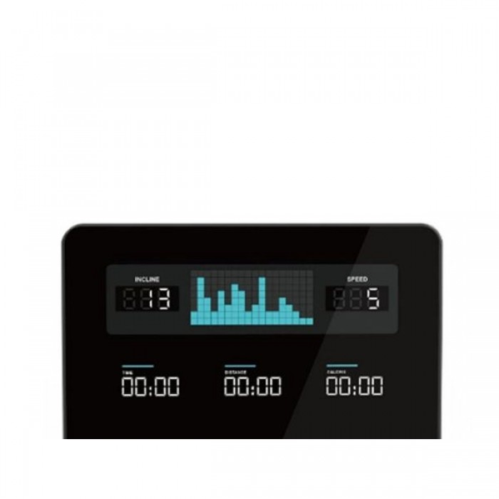 - Показатели: время, скорость, дистанция, калории, пульс, наклон