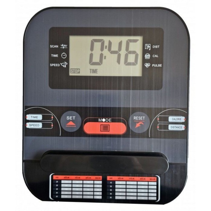 - Дисплей (LED): время, дистанция, калории, скорость, обороты (RPM), пульс