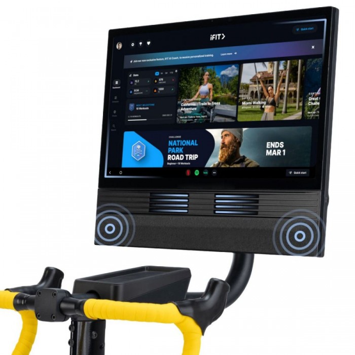 • Большой 24-дюймовый экран позволяет смотреть видео, маршруты и тренировки в реальном времени.