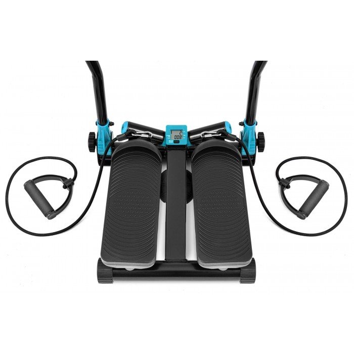 Модель сочетает классическое движение вверх-вниз с боковой амплитудой, что позволяет задействовать глубокие мышцы и разнообразить нагрузку. Дополнительные съёмные палки и эспандеры расширяют возможности тренировок, превращая обычный степпер в универсальный домашний мини-комплекс.